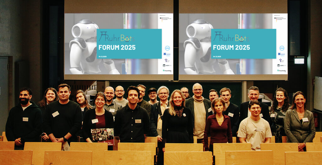 Das RuhrBots Forum 2025 bot den Gästen einen spannenden Einblick in Forschung, Praxisanwendung und gesellschaftliche Potenziale sozialer Robotik. Die Veranstaltung stärkte den Dialog zwischen Hochschule, Städten, Wirtschaft und Bürger:innen. Zudem gab das RuhrBots Forum einen Ausblick auf die kommenden zwei Jahre des Projekts, die auf eine Zusammenarbeit und Forschung mit und für Unternehmen abzielt.