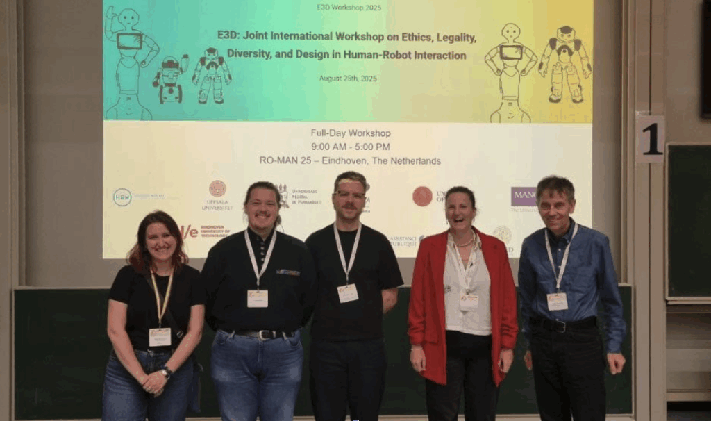 Das RuhrBots-Team (Lukas Erle, André Helgert, Prof. Dr. Carolin Straßmann und Prof. Dr. Sabrina Eimler) hat gemeinsam mit internationalen Forschenden aus der Mensch-Roboter-Interaktion (HRI) den Workshop „E3D: Joint International Workshop on Ethics, Legality, Diversity, and Design in Human-Robot Interaction“ auf der IEEE ROMAN 25 veranstaltet. Hier kamen internationale Expert:innen aus Forschung und Praxis zusammen, um …