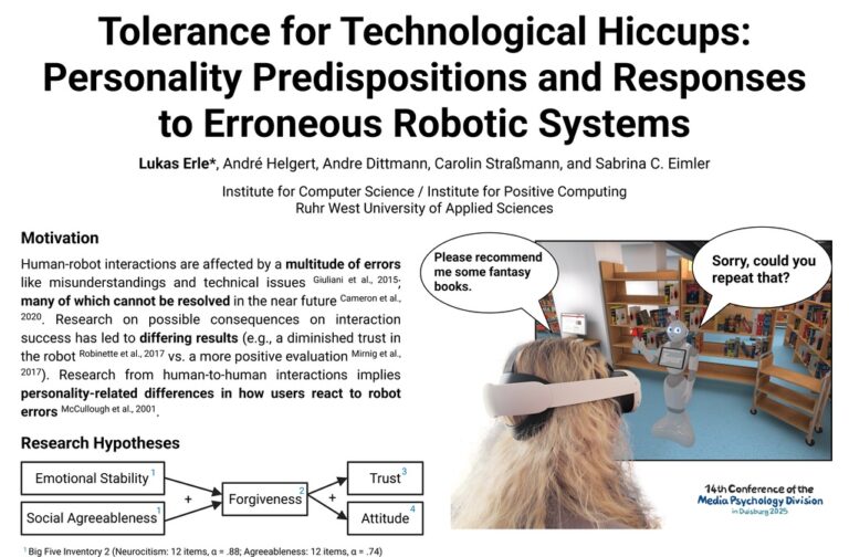 In einer Studie mit 62 Teilnehmenden wurde untersucht, wie Persönlichkeitsmerkmale und Technologieaffinität die Reaktion auf Roboterfehler prägen.