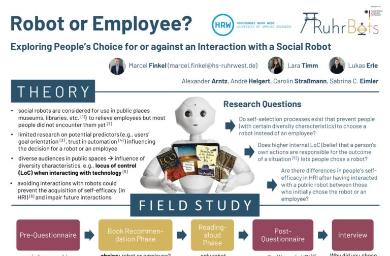 In einer Feldstudie mit 65 Teilnehmenden wurde untersucht, welche Faktoren beeinflussen, ob Menschen in öffentlichen Räumen wie Bibliotheken lieber mit einem Roboter oder einem Menschen interagieren.
